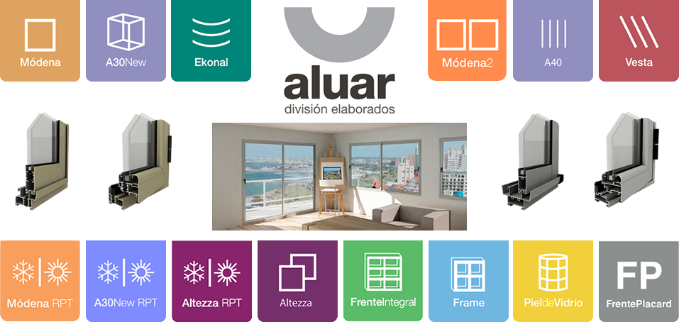 Fabricación de Aberturas de aluminio a Medida utilizando perfilería de primera calidad Aluar, Líneas Modena, Modena RPT, A30 New, A40 RPT y Ekonal Plus.